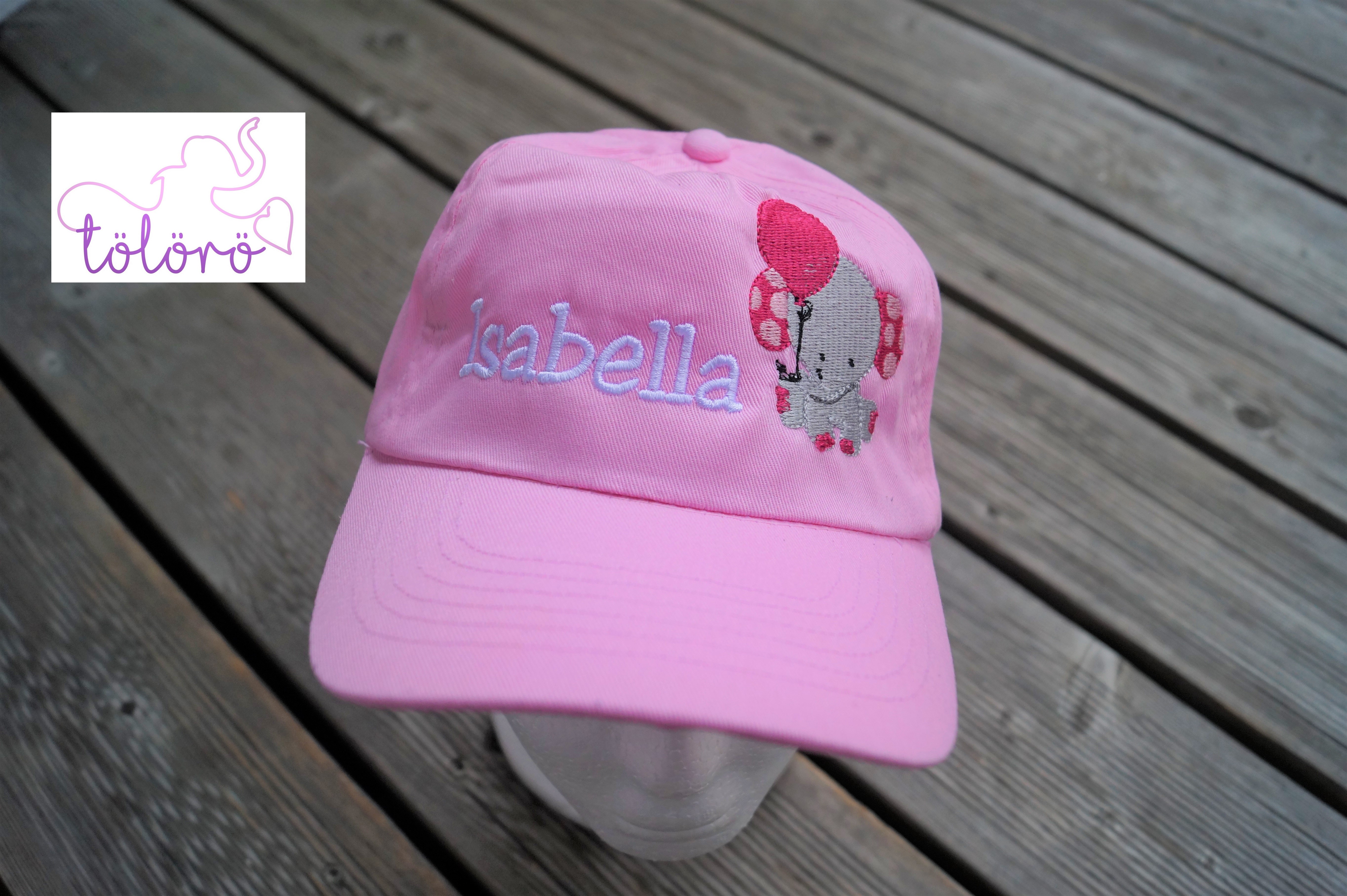 Individuell besticktes Kinder Cap mit Name und Elefant mit Luftballon