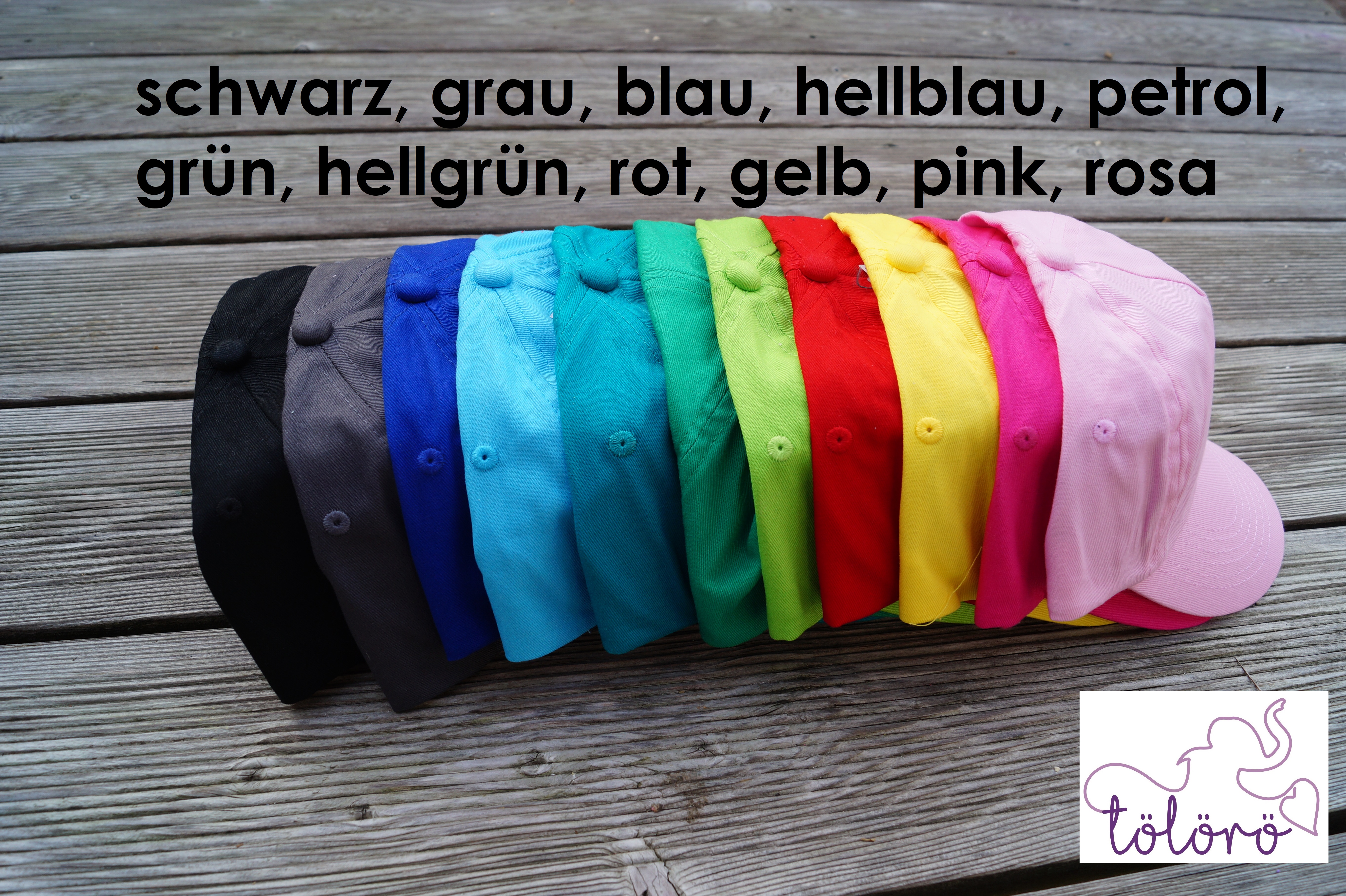 Bitte bei Notizen vermerken was auf die Cap gestickt werden soll und in welcher Farbe.
