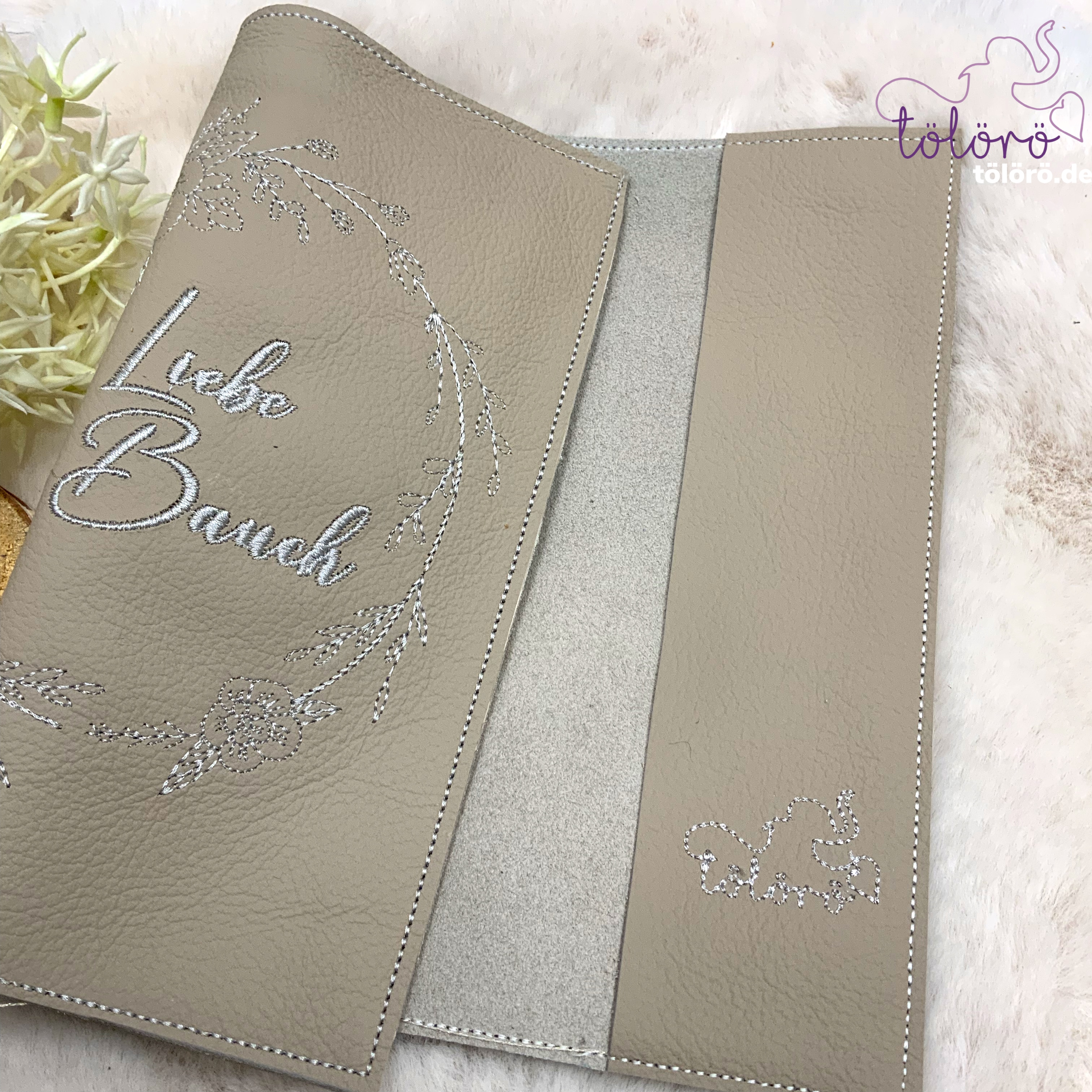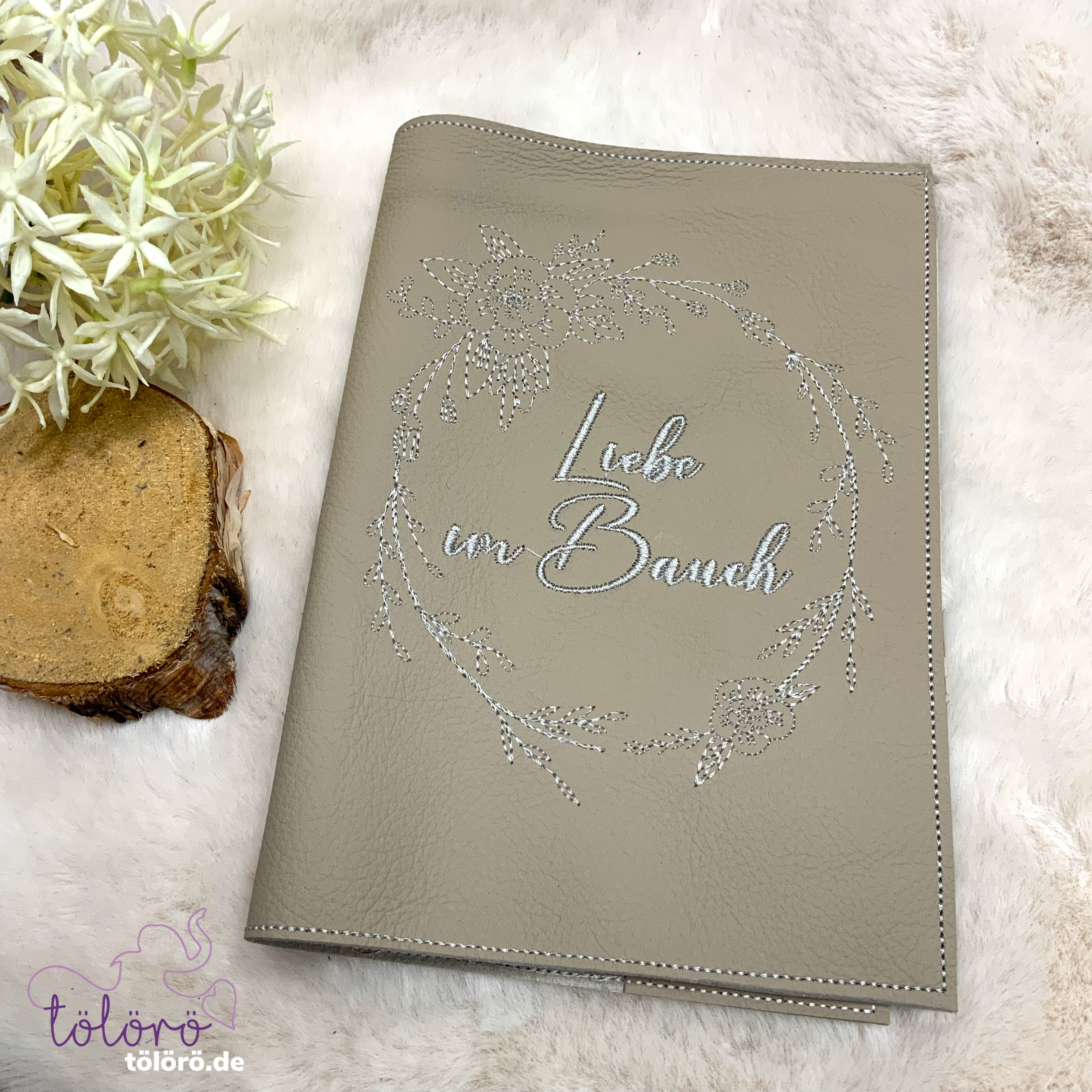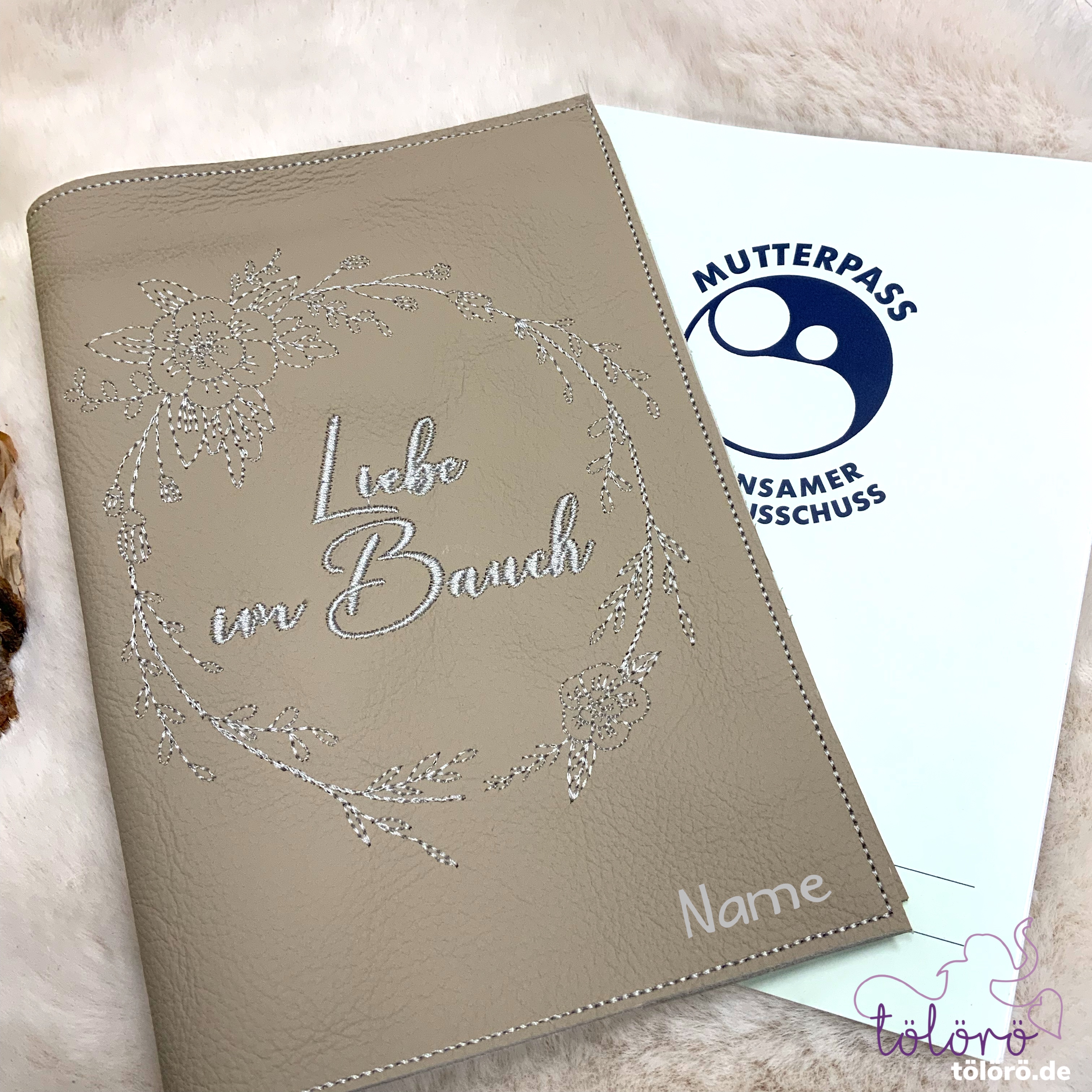 Die Hülle passt perfekt zum deutschen Mutterpass. Gib deine individuellen Wünsche bei der Bestellung an - Lederfarbe, Text und Farbe der Stickerei.