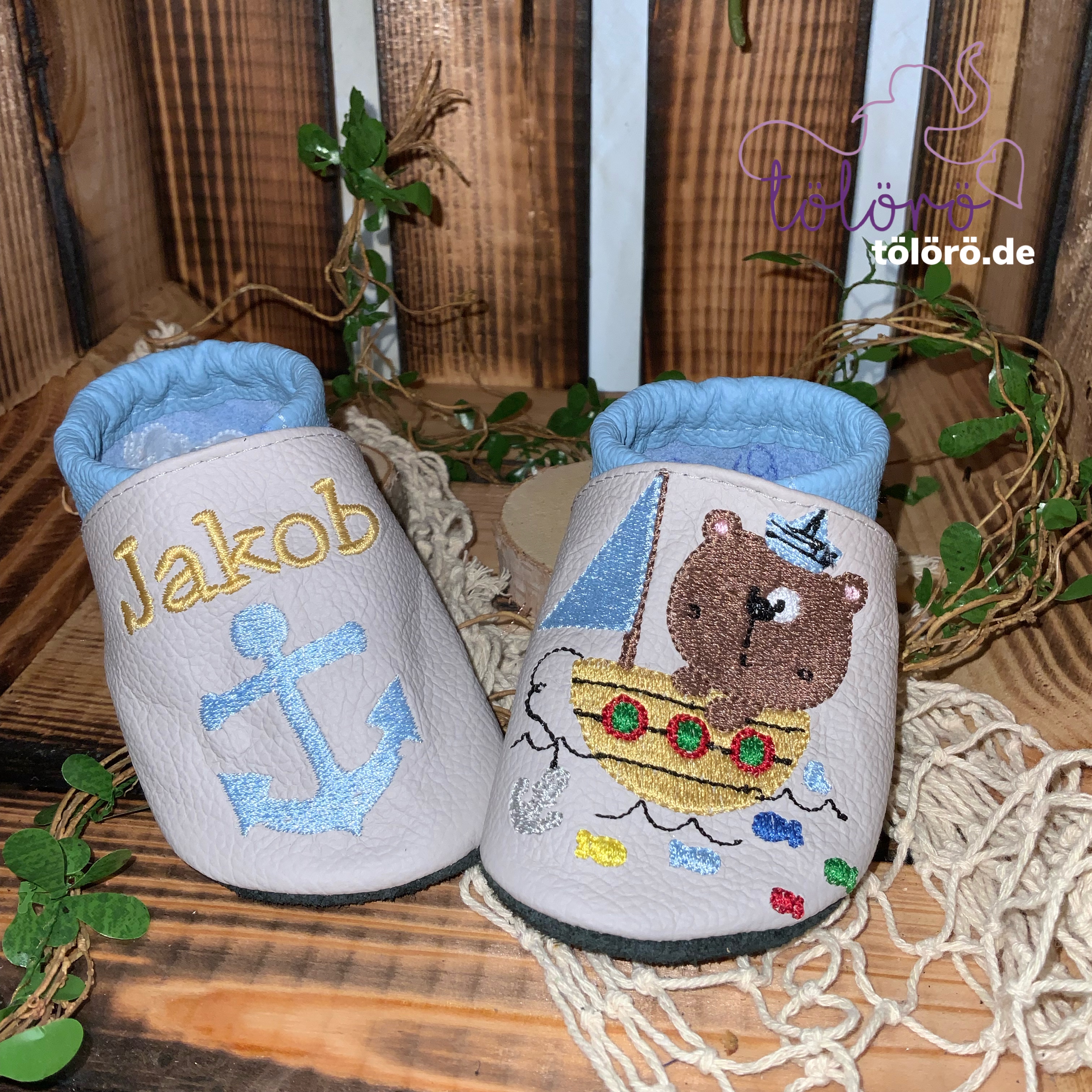 Name mit Anker und Bär mit Boot