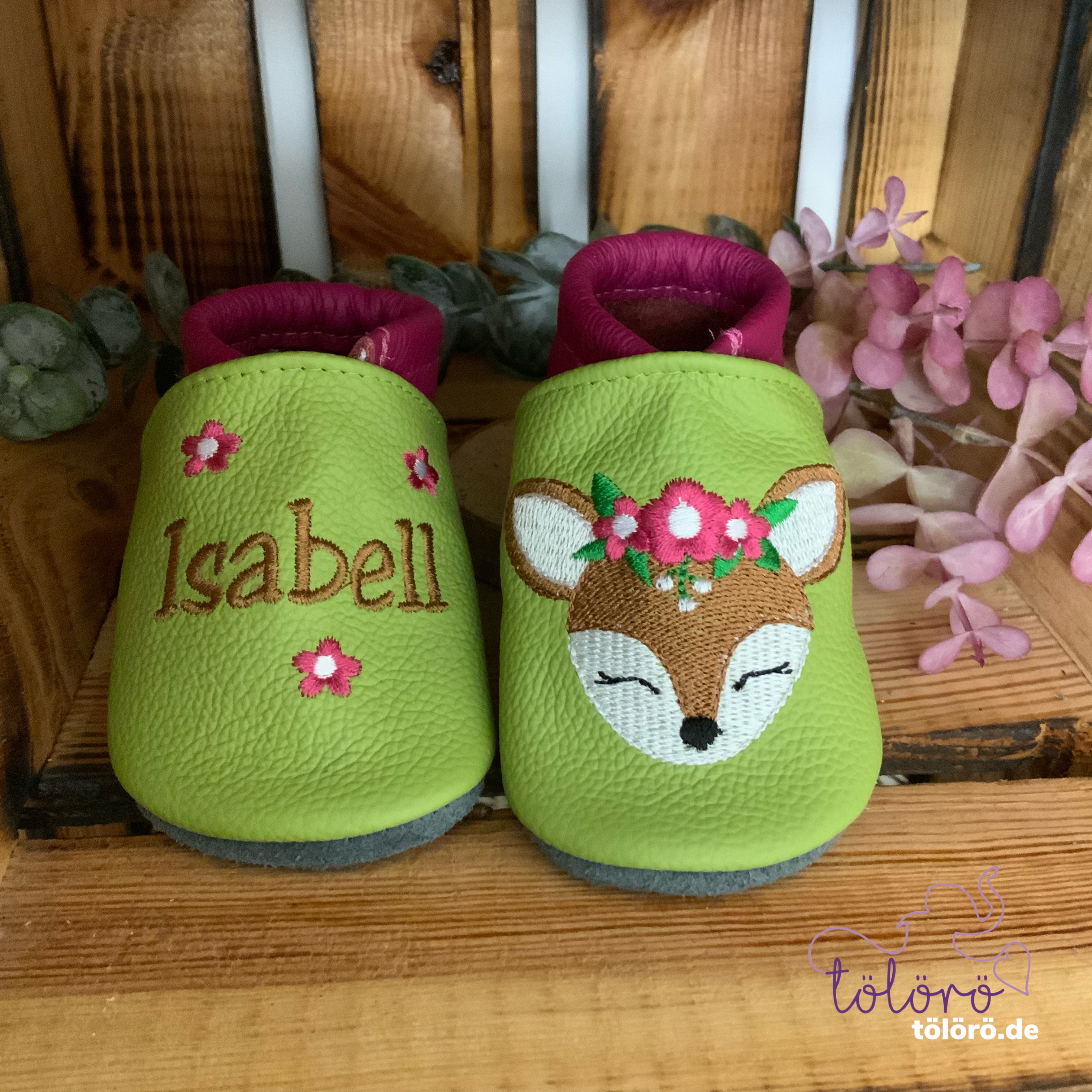Beispiel Isabell Kappe apfelgrün, Ferse pink