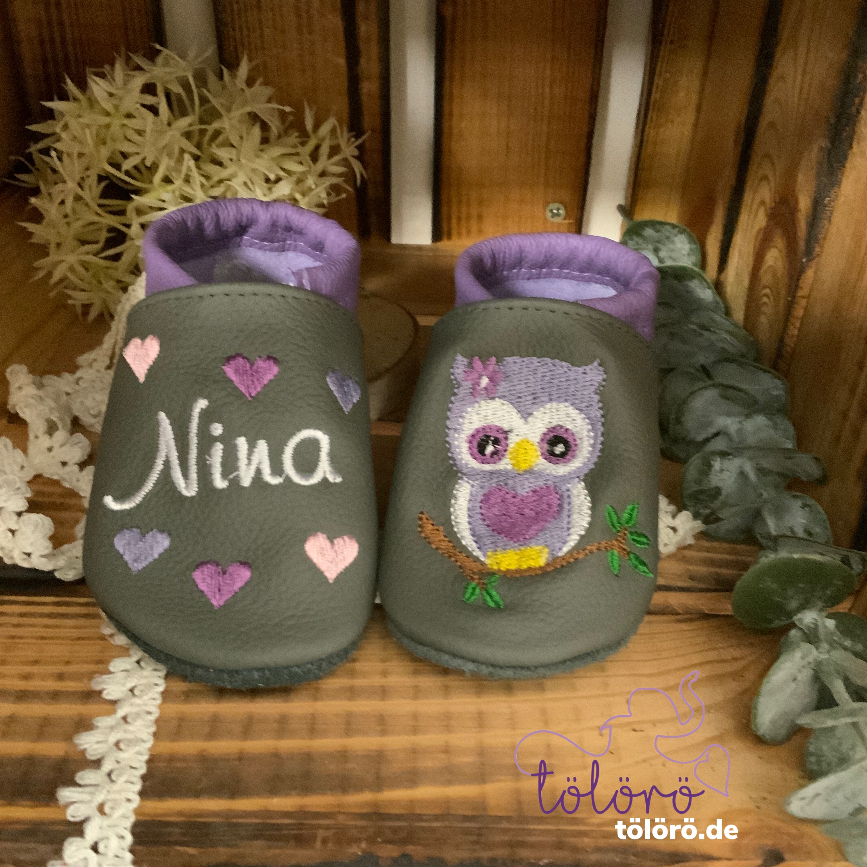 Beispiel Nina Kappe Anthrazit, Ferse Helllila Herzen statt Blumen