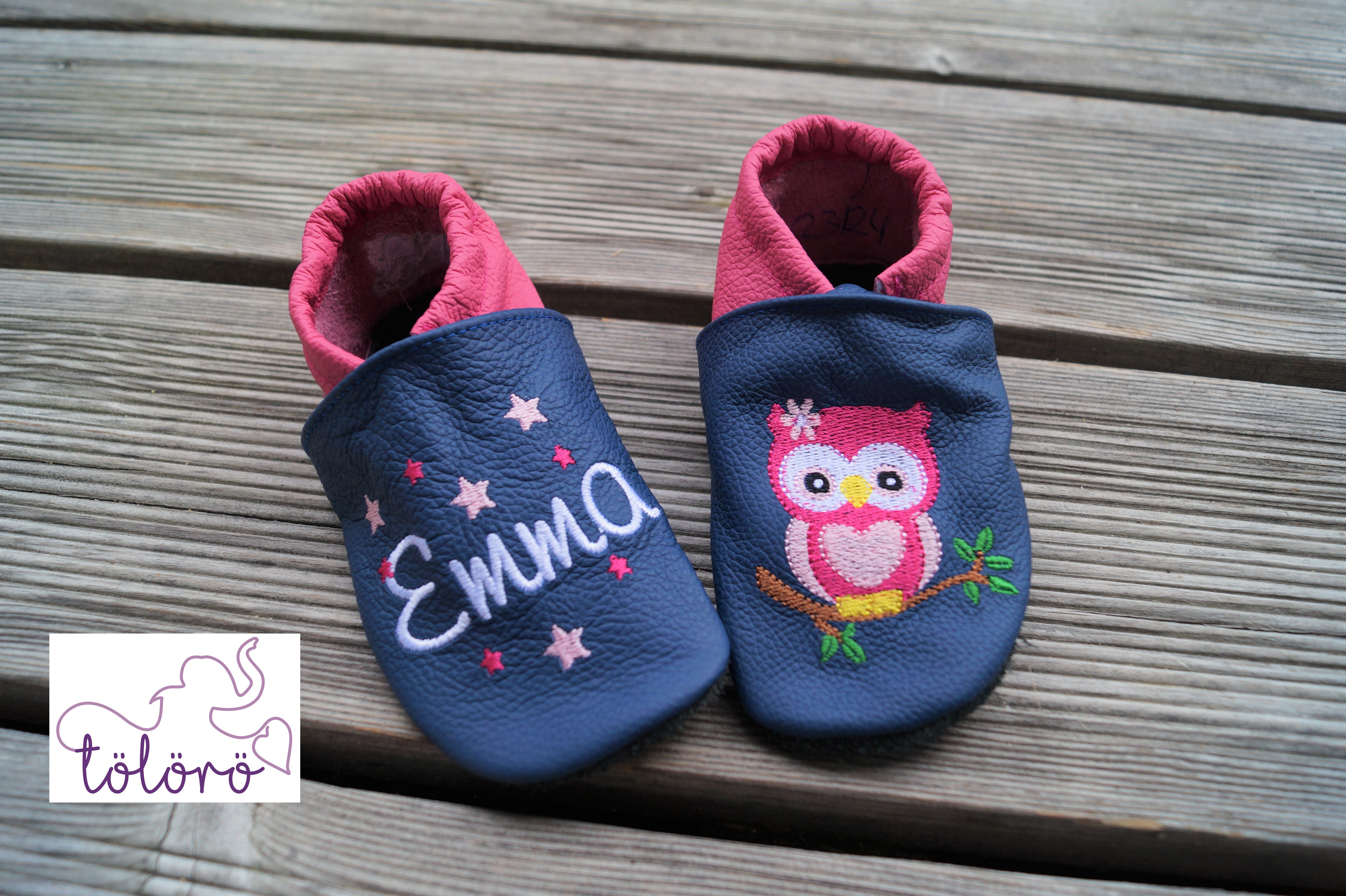 Beispiel Emma Kappe Blau, Ferse Pink - kleine Sterne satt Blumen