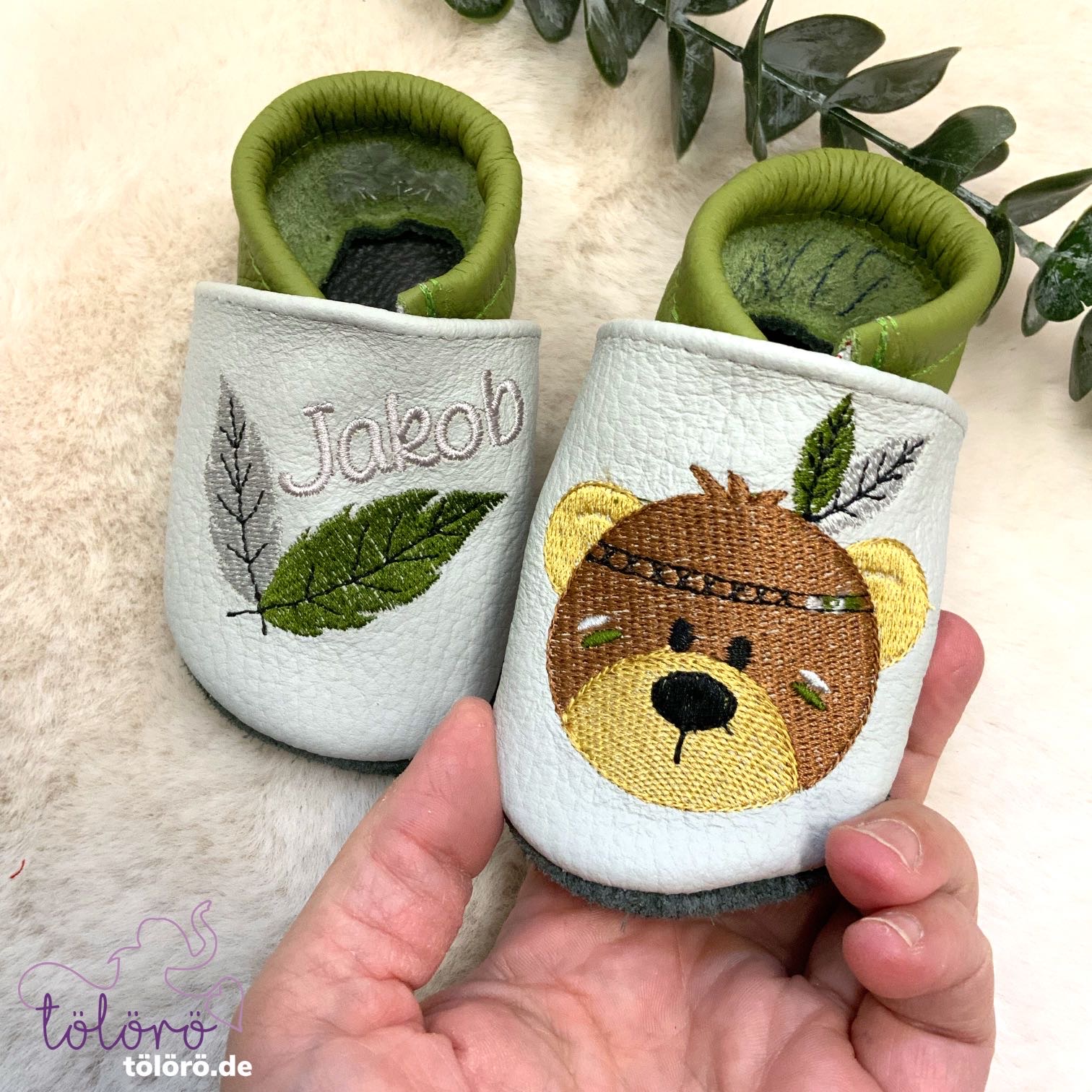 Name mit Feder und Bär