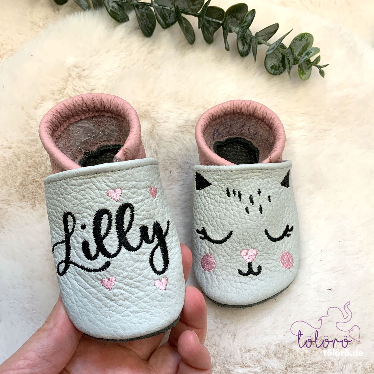Name mit Herzen und Katzengesicht