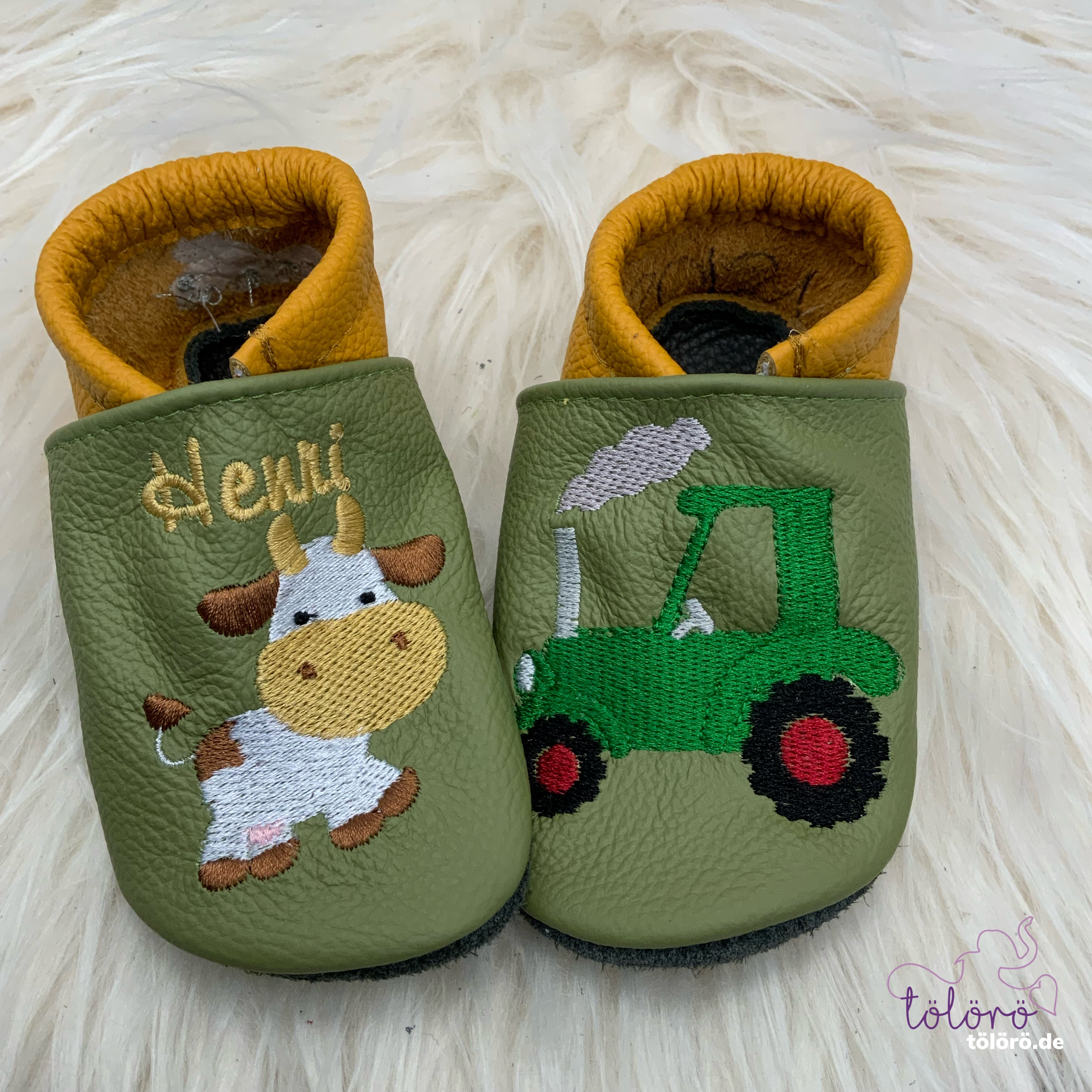 Beispiel Henri Kappe jägergrün, Ferse senf - Traktor grün