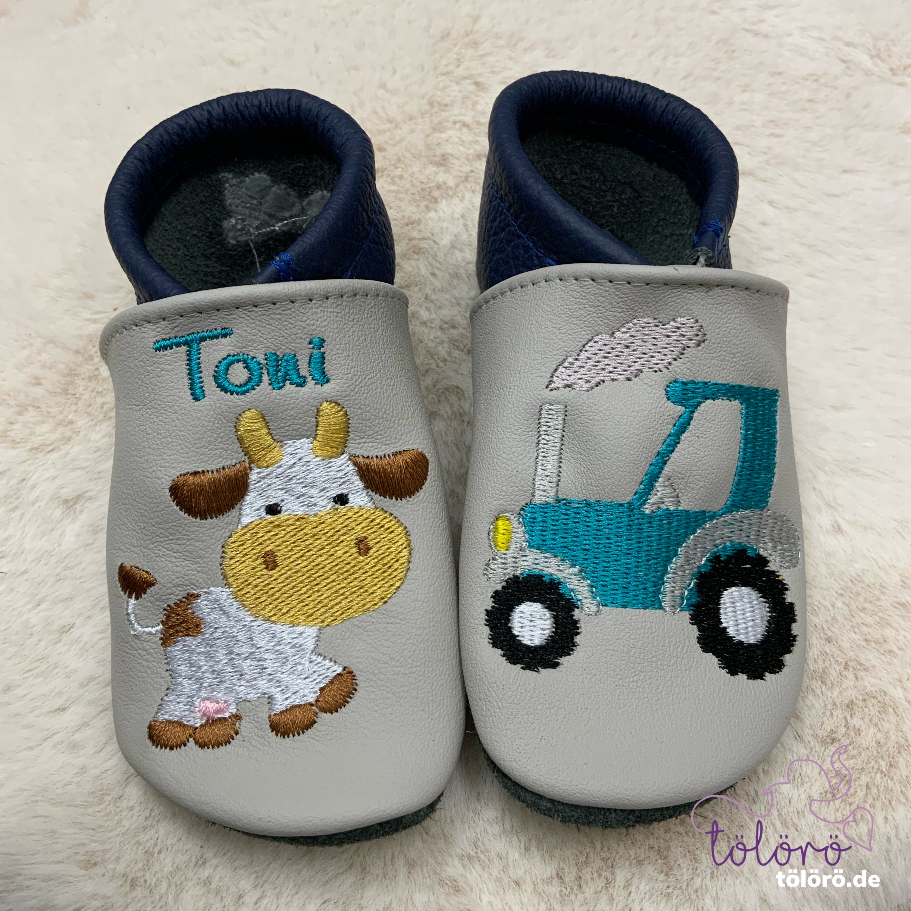 Beispiel Toni Kappe hellgrau, Ferse bllau - Traktor petrol