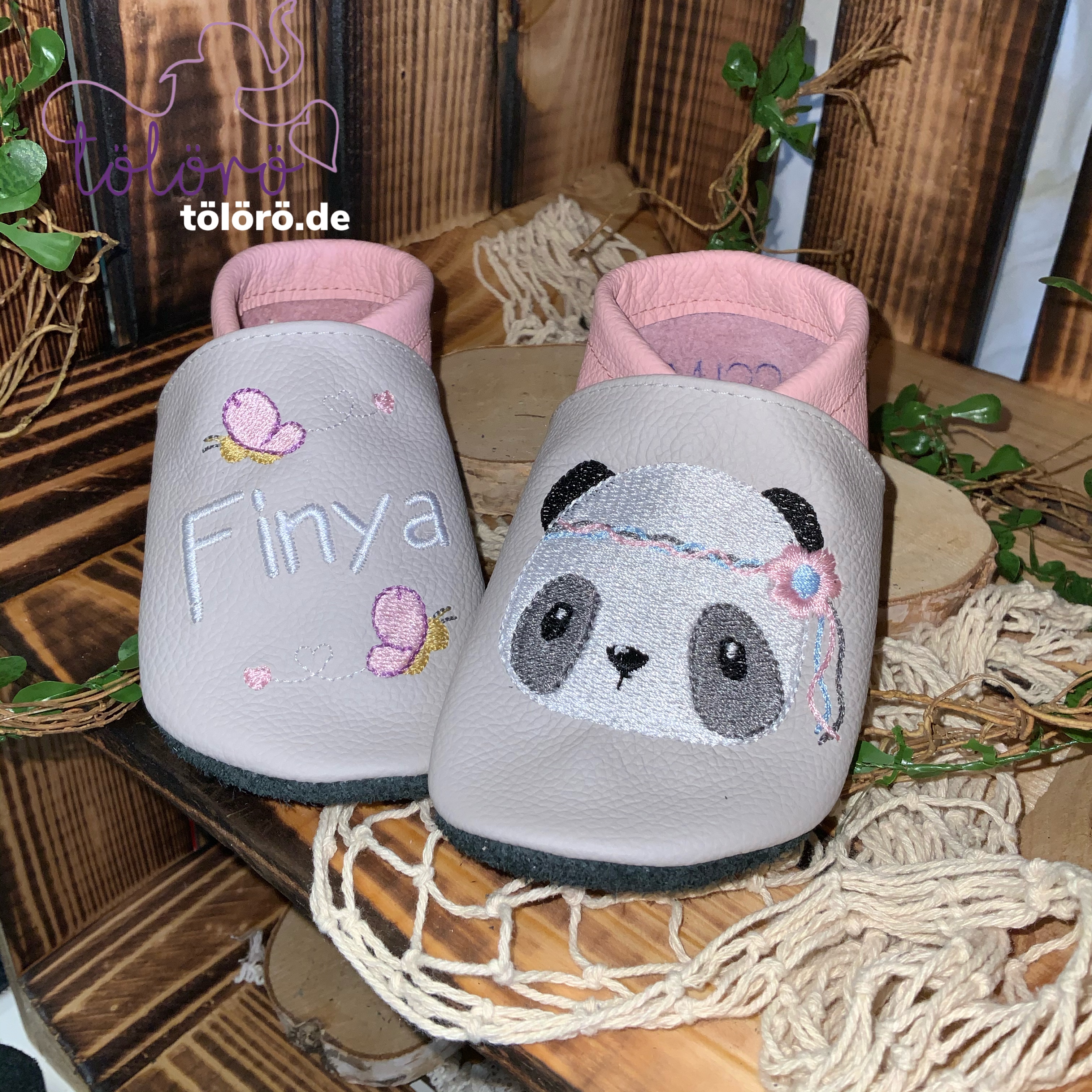 Name mit Schmetterlinge und Pandakopf