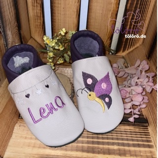 Beispiel Lena Kappe Hellgrau, Ferse Dunkellila