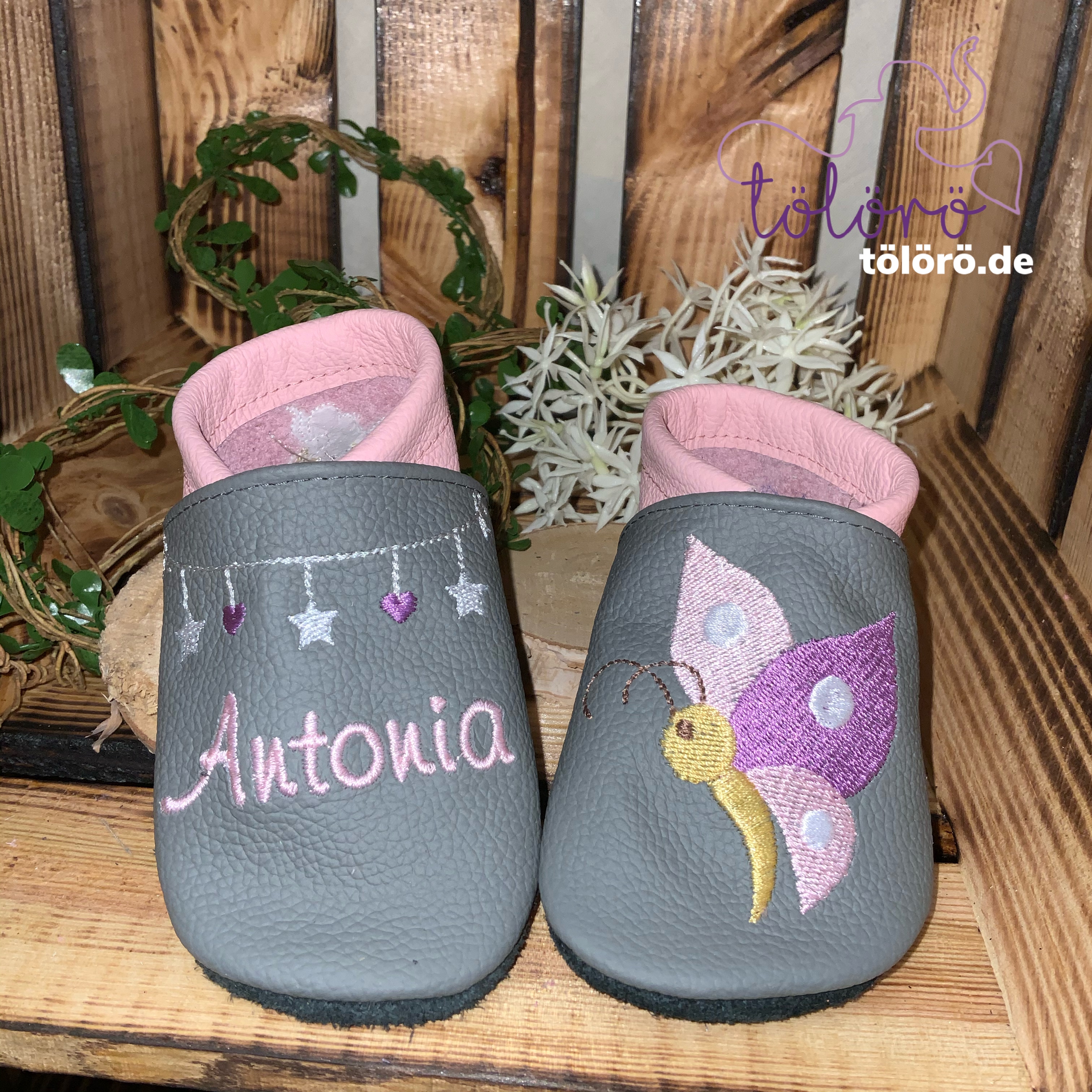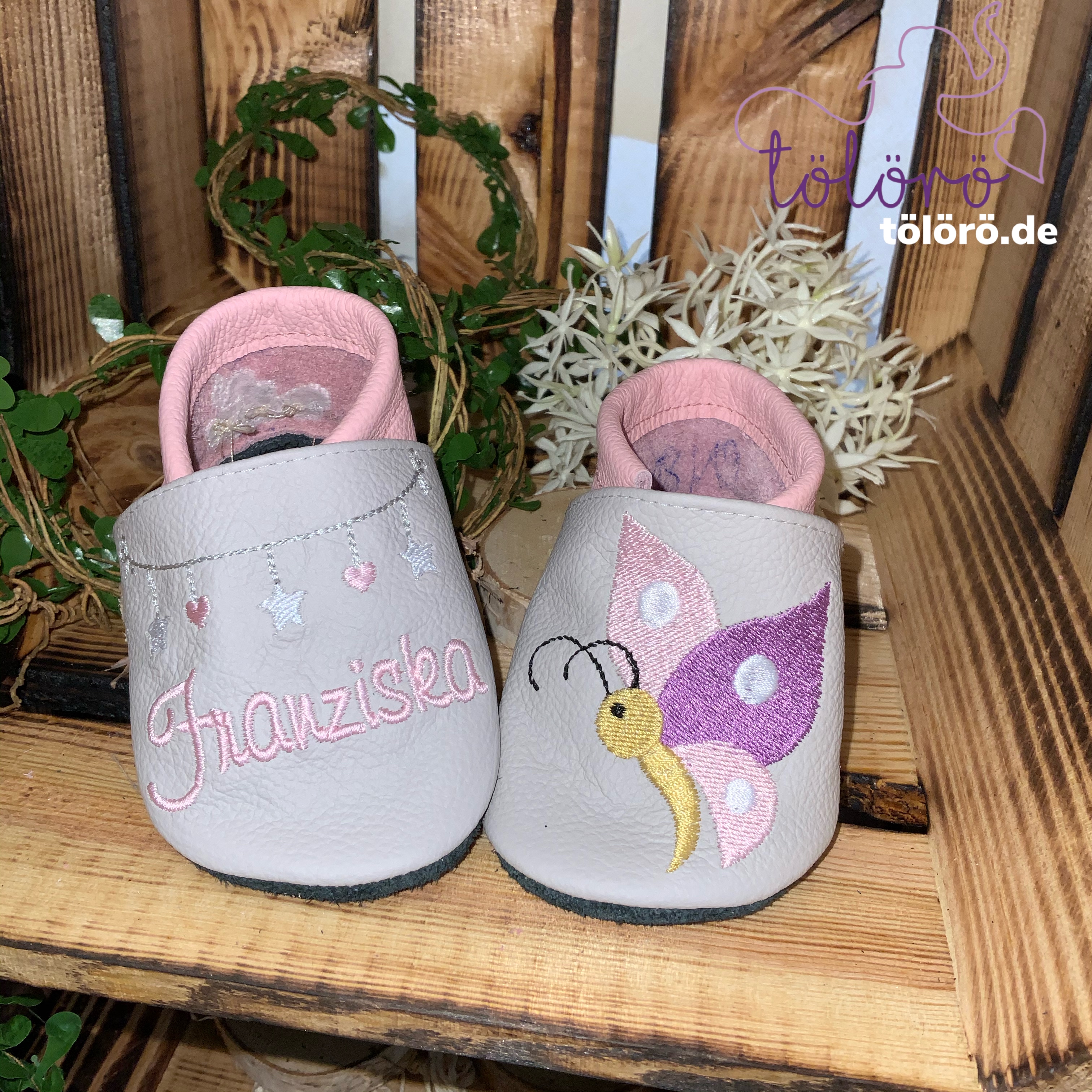 Beispiel Franziska Kappe Hellgrau, Ferse Rosa