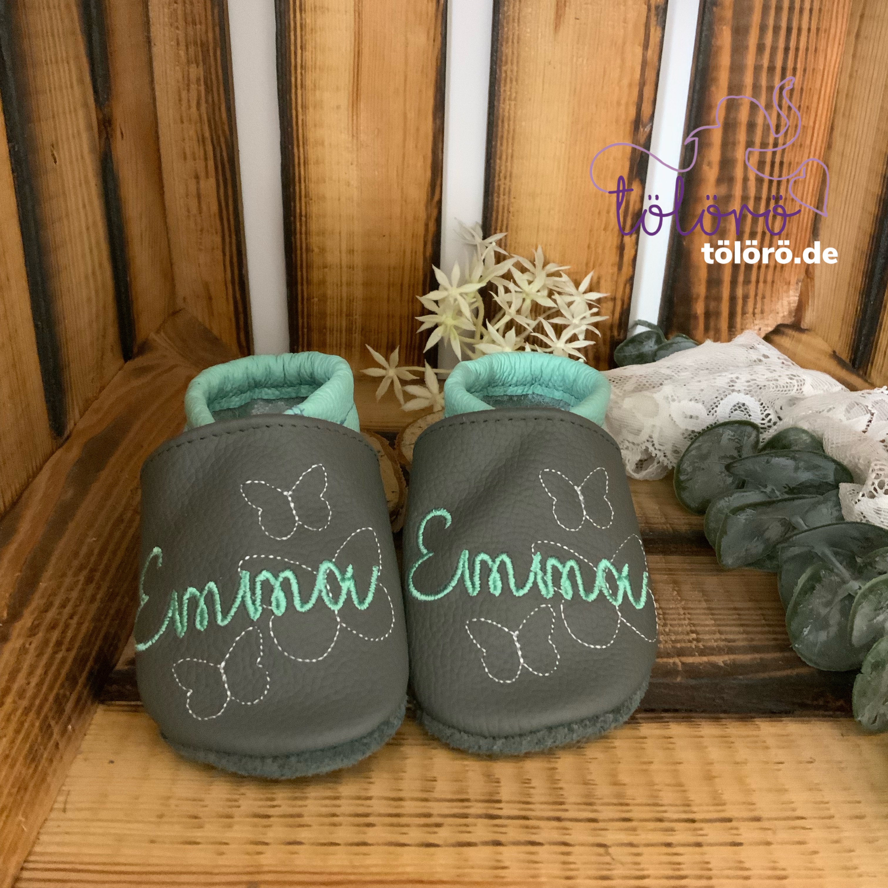 Beispiel Emma Kappe anthrazit, Ferse mint