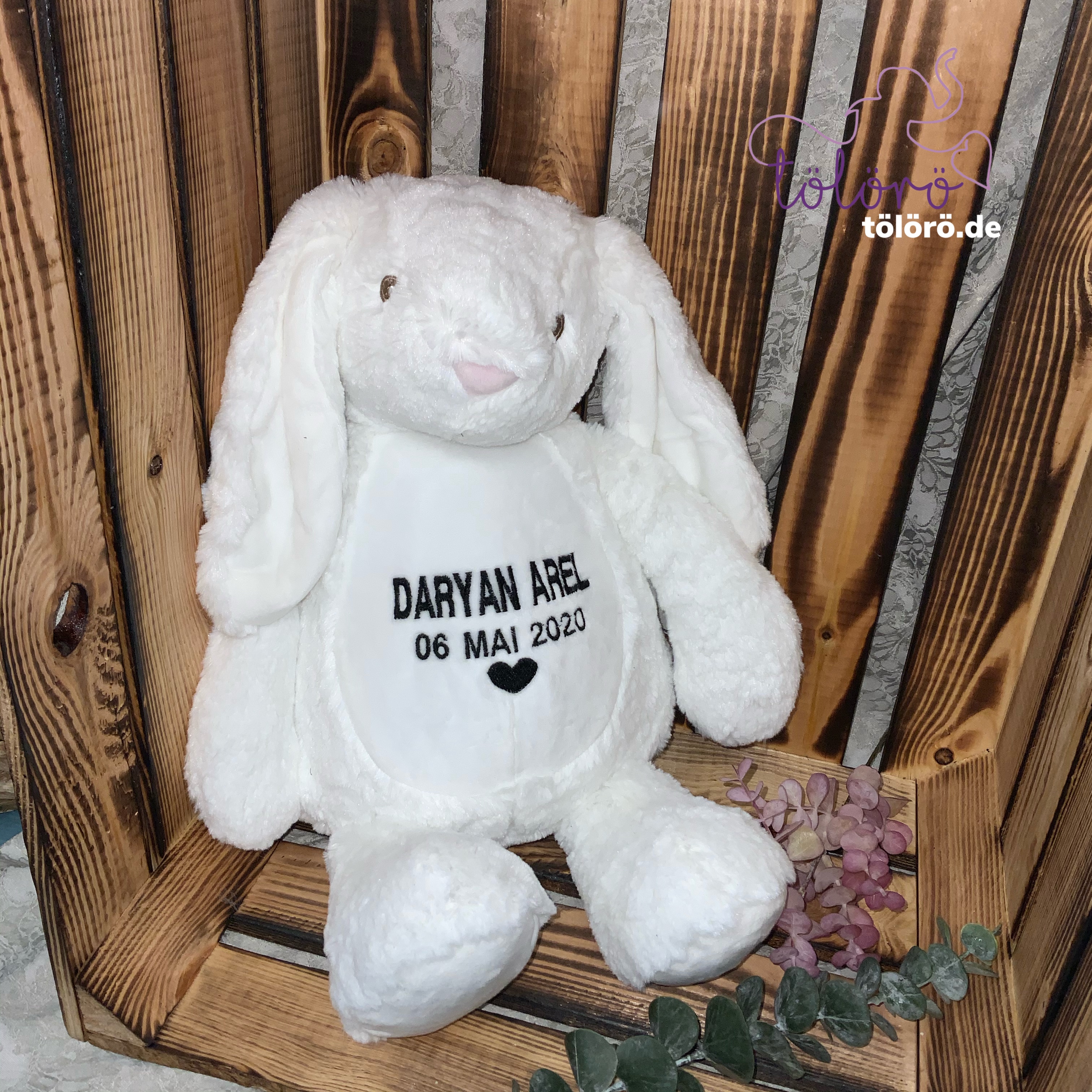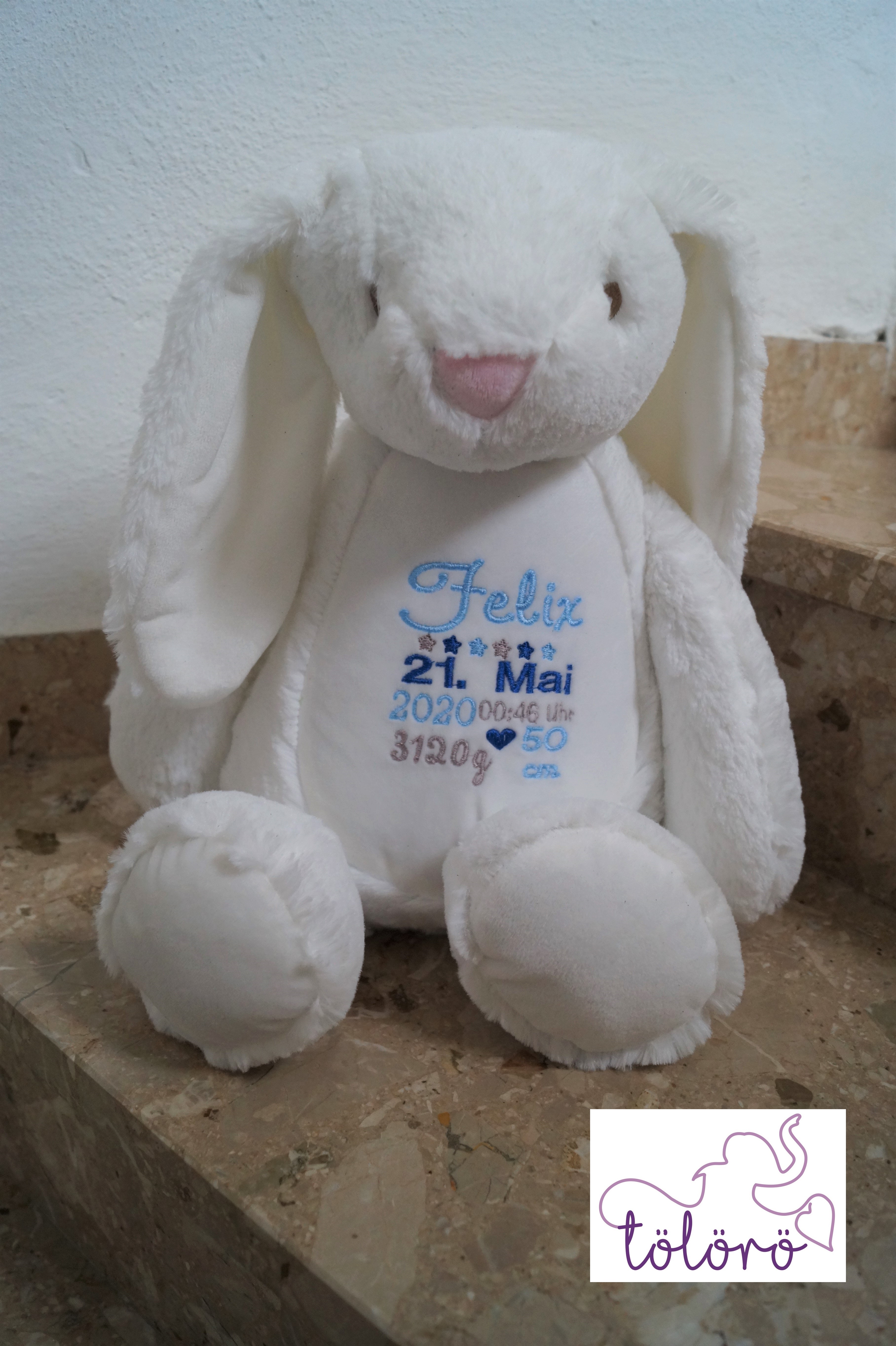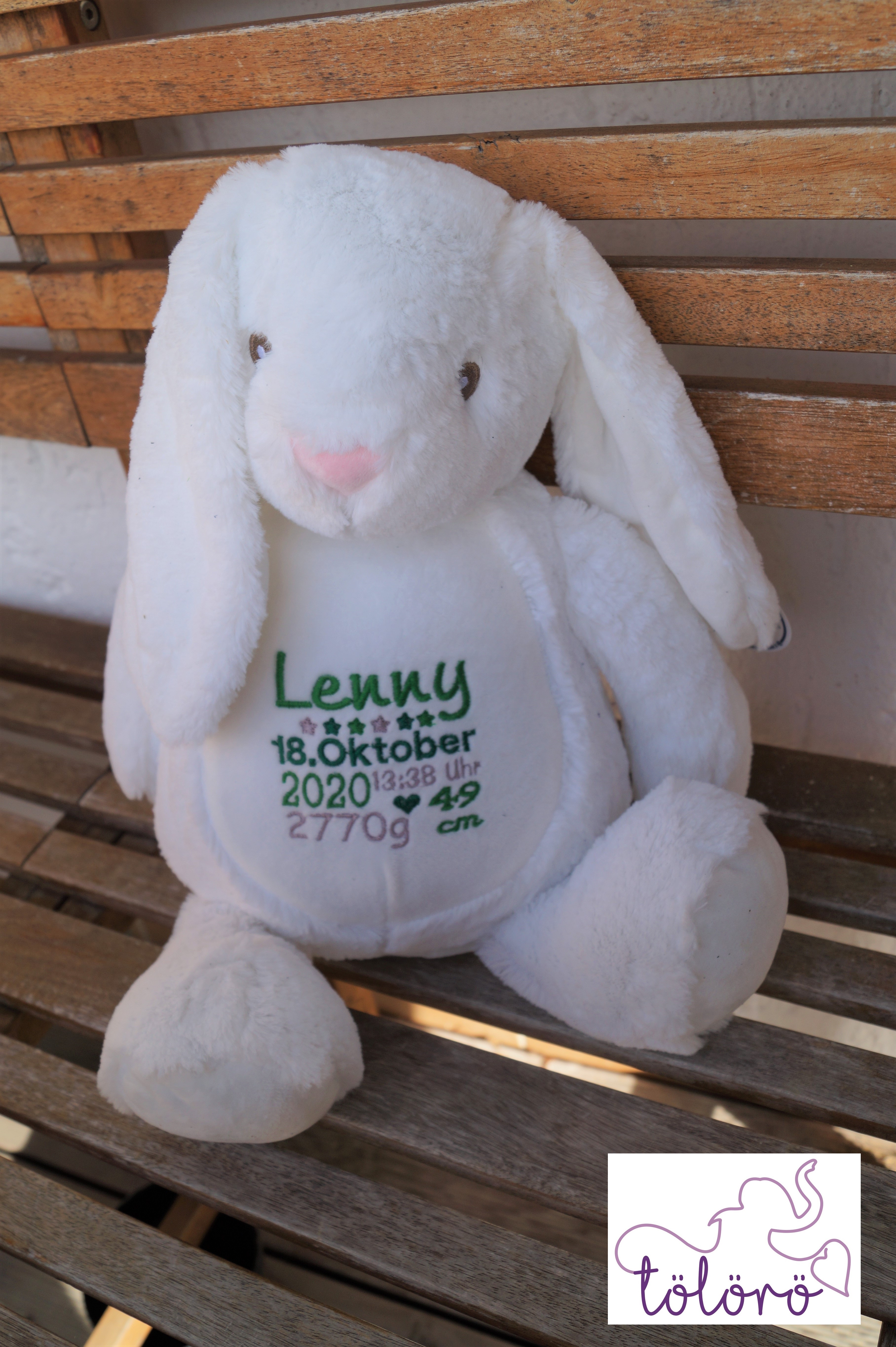 Individuell bestickt mit euren Daten. Das perfekte Geschenk zur Geburt oder Taufe.