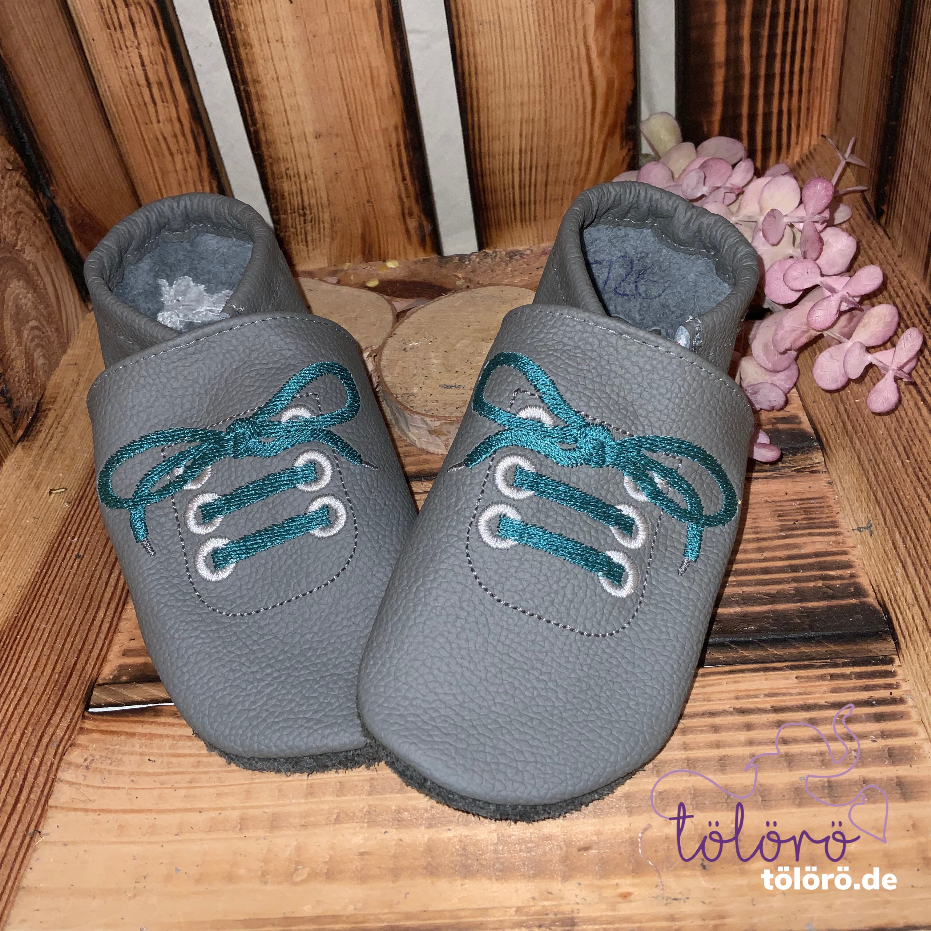 Beispiel Kappe Antharzit, Ferse Anthrazit, Schnürsenkel Petrol