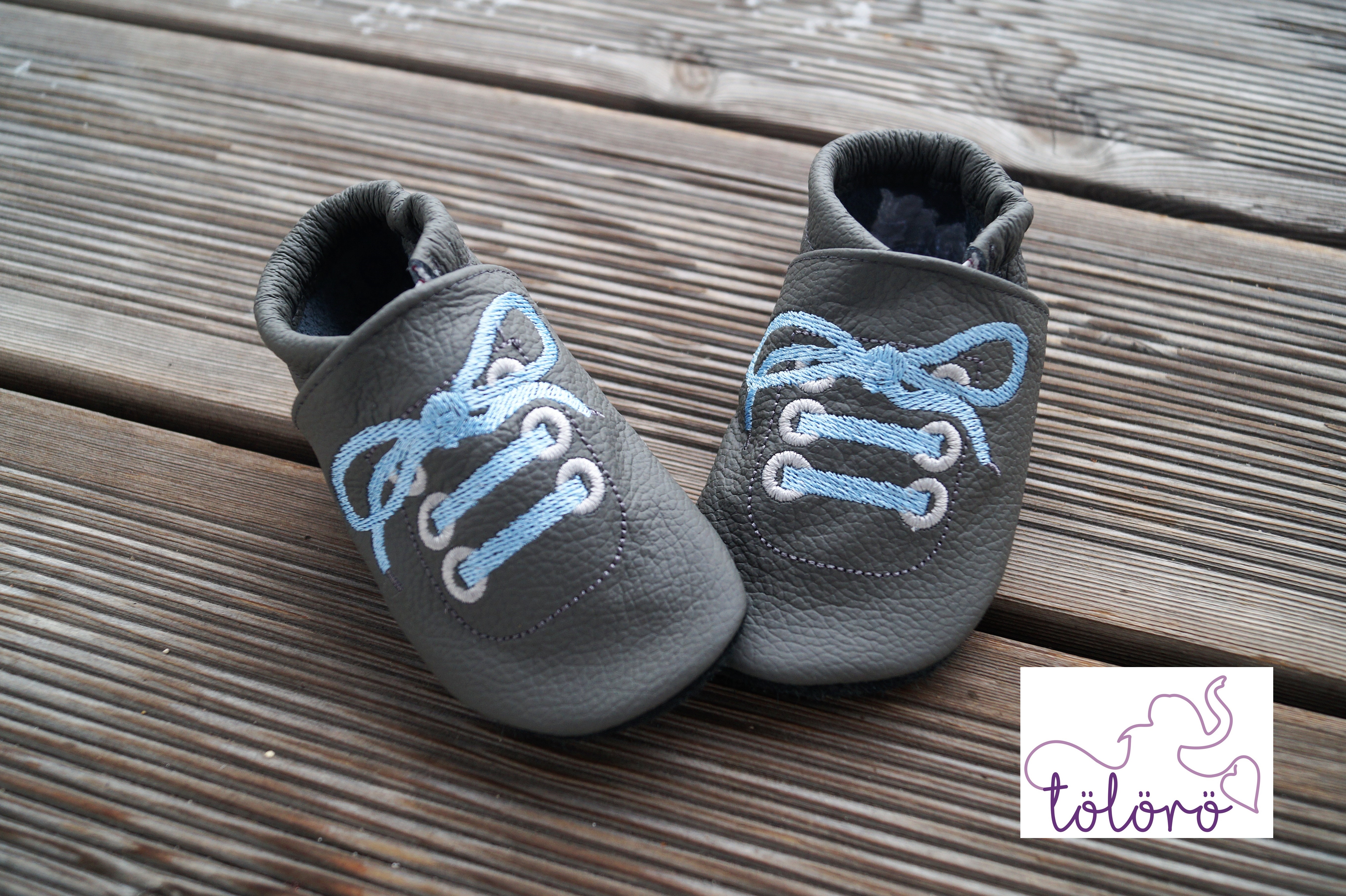 Beispiel Kappe Anthrazit, Ferse Anthrazit, Schnürsenkel Hellblau