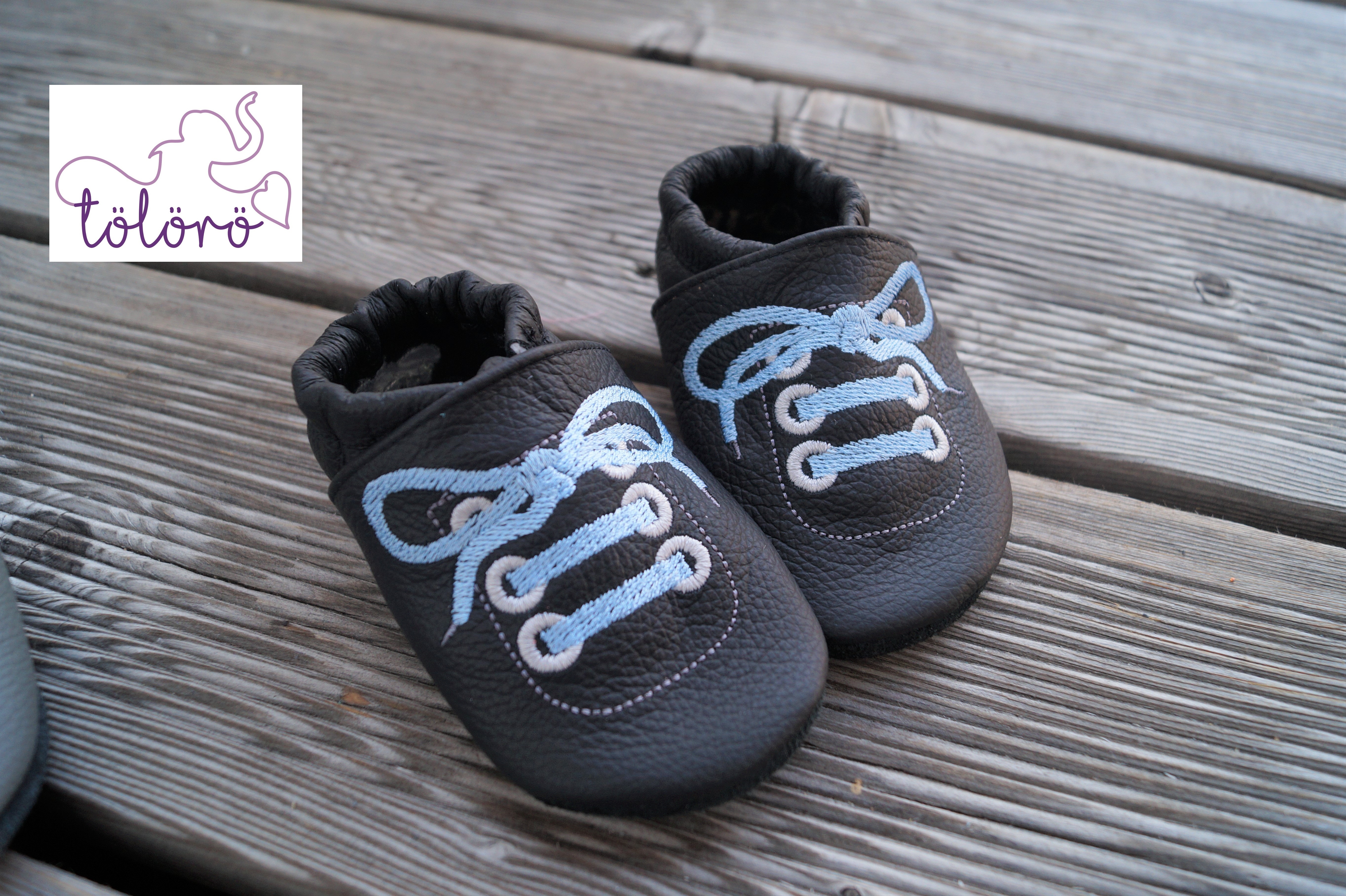 Beispiel Kappe Schwarz, Ferse Schwarz, Schnürsenkel Hellblau