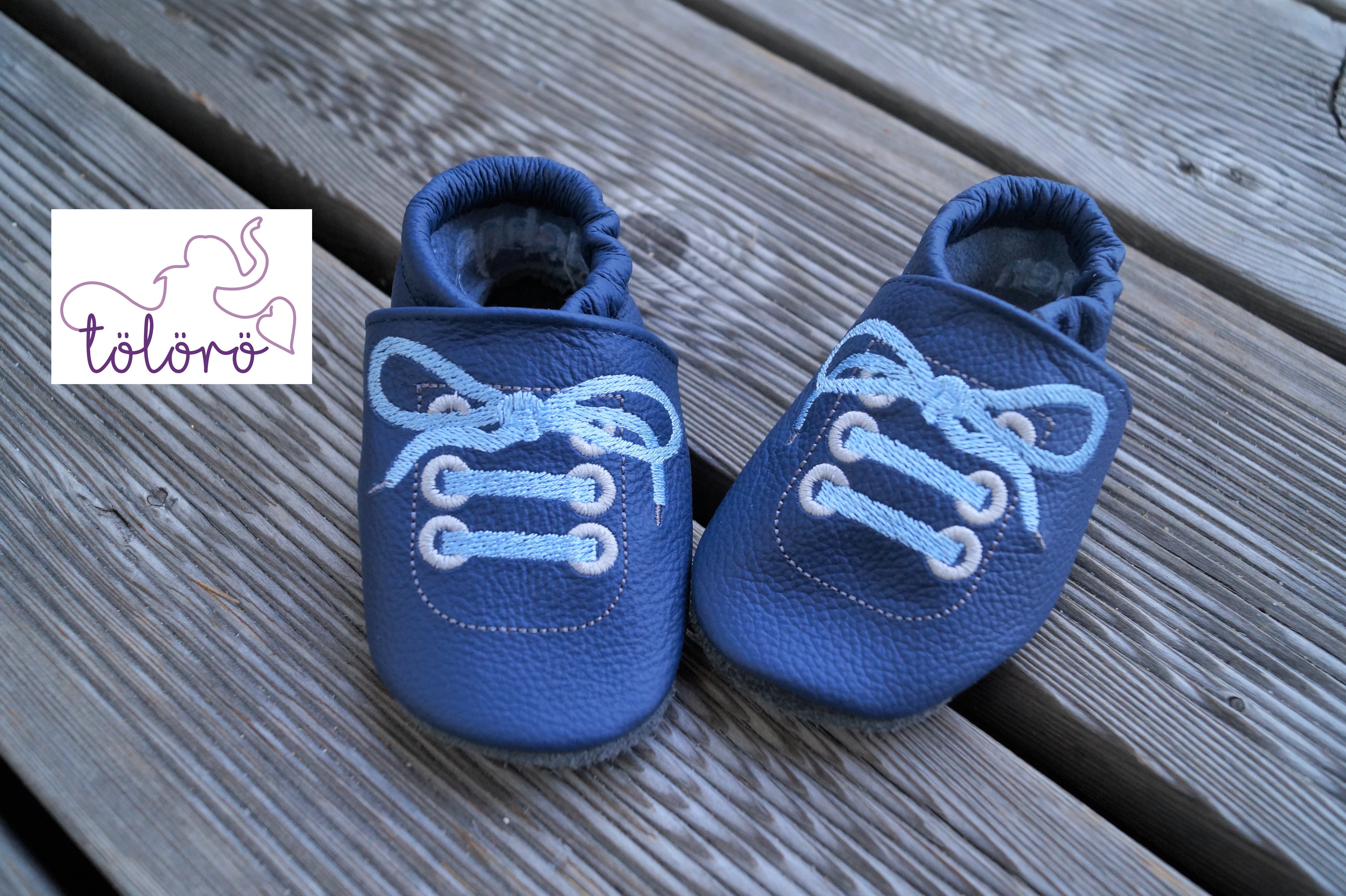 Beispiel Kappe Blau, Ferse Blau, Schnürsenkel Hellblau