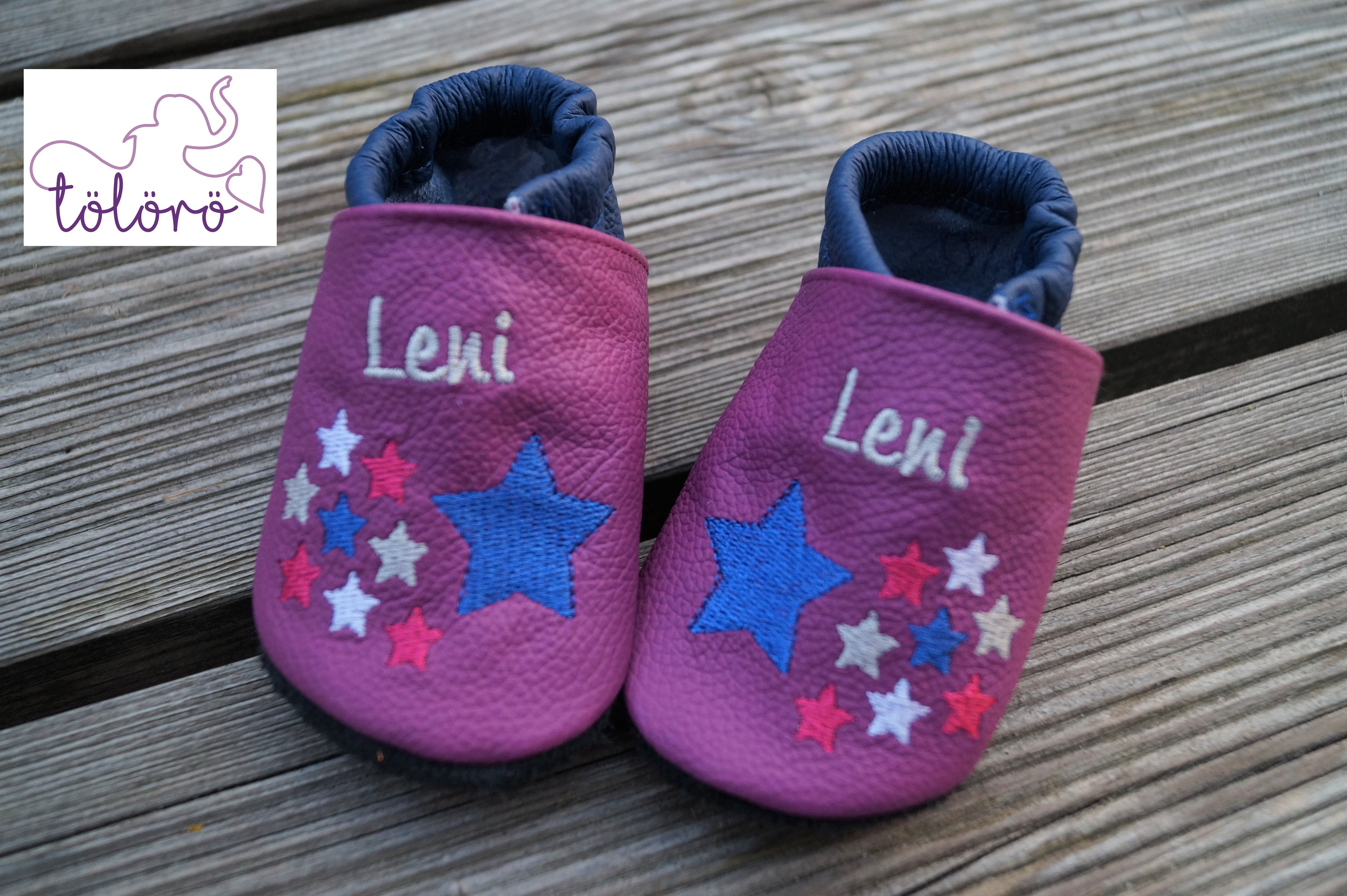 Beispiel Leni Kappe Violett, Ferse Blau
