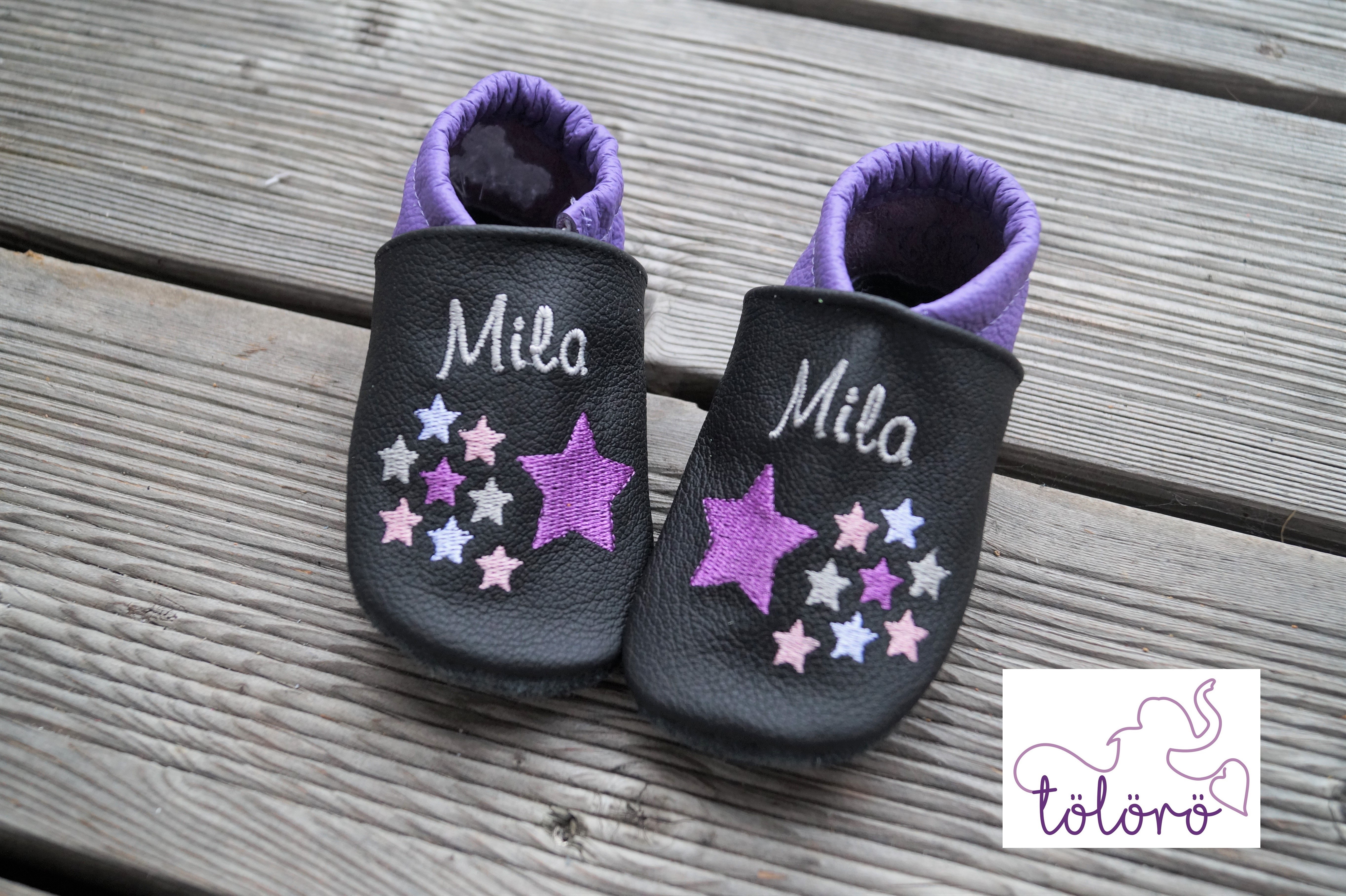 Beispiel Mila Kappe Schwarz, Ferse Helllila