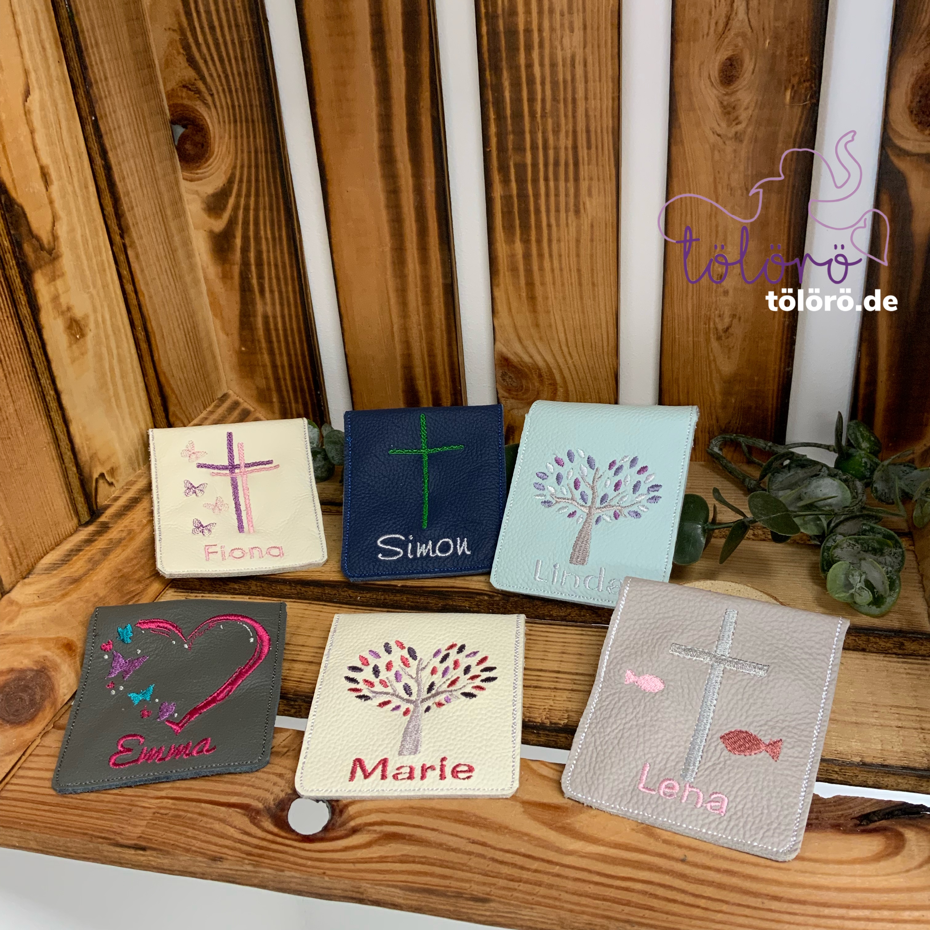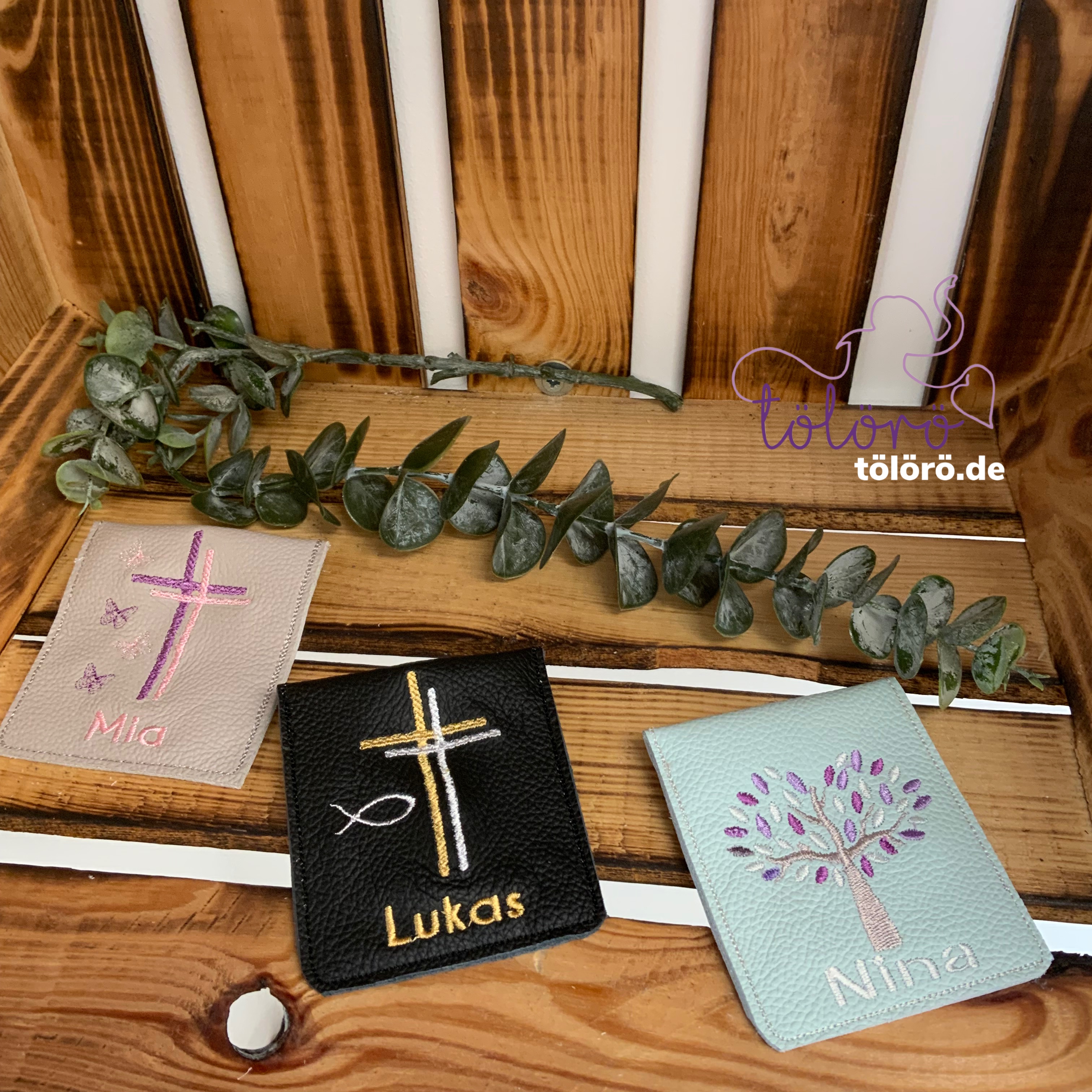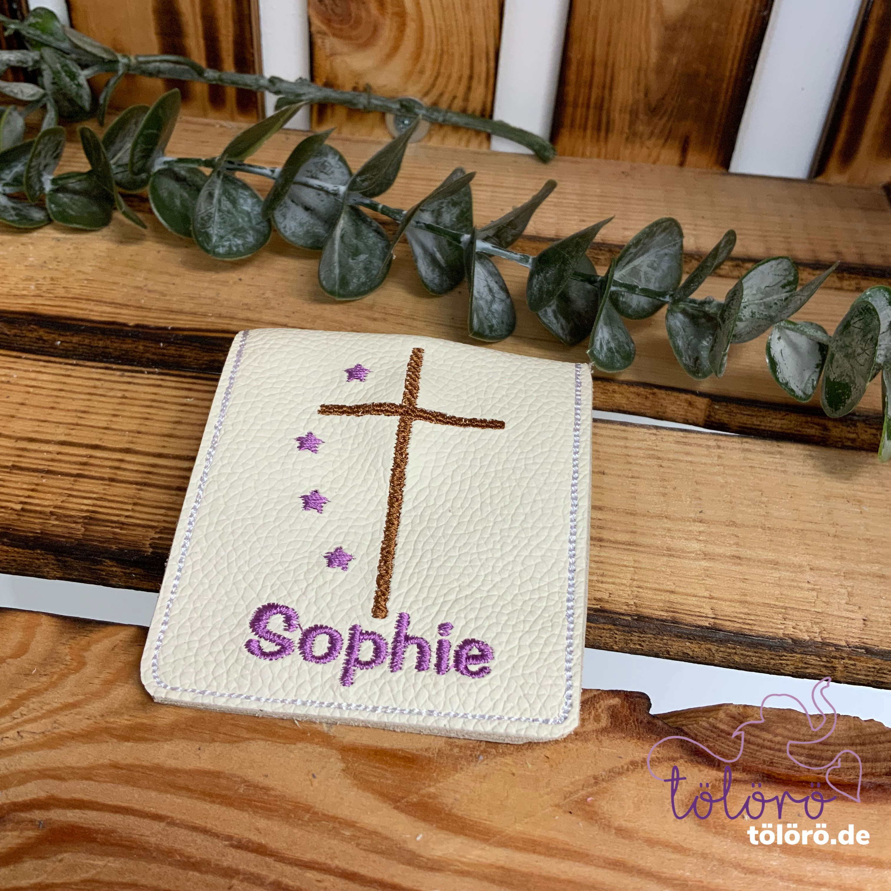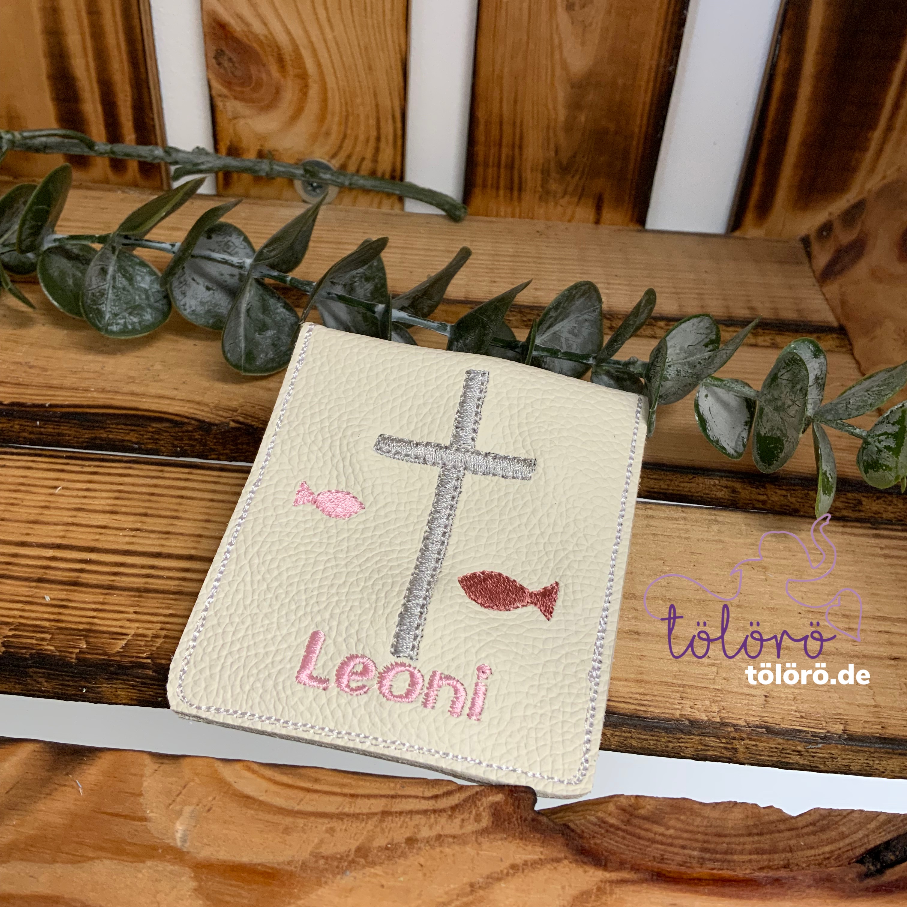 Die Tasche für den Rosenkranz kann passend zur bestellten Gotteslobhülle angefertigt werden.